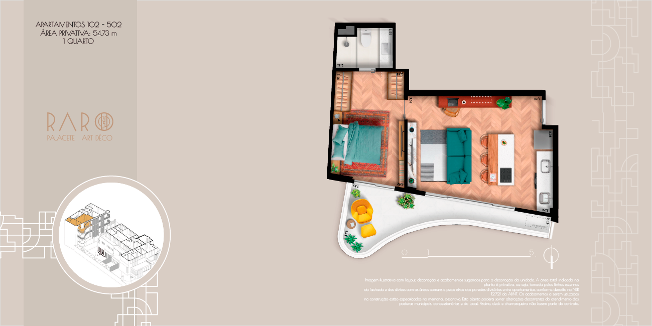 Nossa intervenção colecionou toda a qualidade espacial e a herança artística que foram idealizadas no projeto original, e transportou para as novas unidades e a identidade, moldando um diálogo entre esses elementos. De modo que, os ambientes relacionam-se entre si, e tudo faz parte de um mesmo tempo, de uma mesma conversa, proporcionando uma atmosfera que une a praticidade da vida moderna com a grandiosidade do esplendor do Art Déco Carioca.