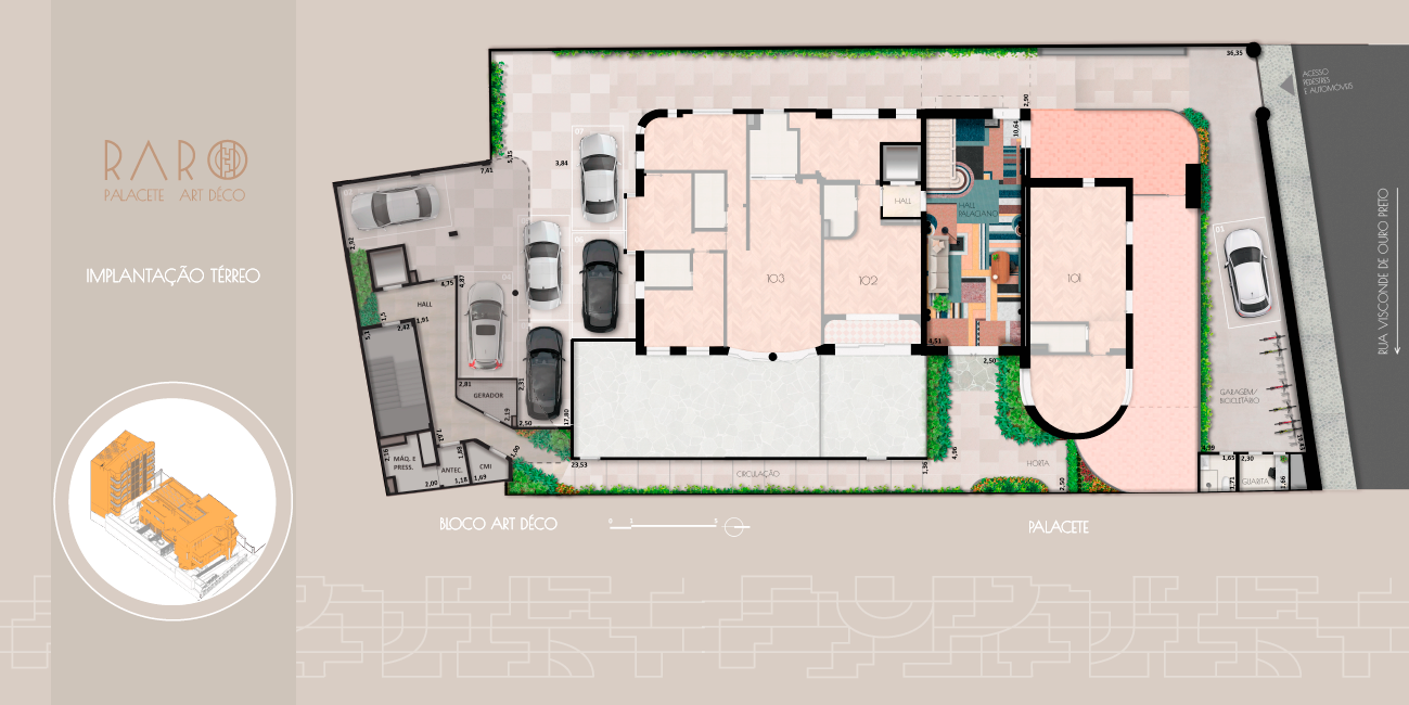 O Palacete será reformado para receber novas vidas, novas famílias, novas histórias. São inúmeras as qualidades do Raro: desde os mármores do piso, fabricados na década de 20, presentes no hall, onde todos os proprietários poderão ter o prazer de usufruir diariamente, até as colunatas, o pé direito alto, os vitrais e a escada imponente.